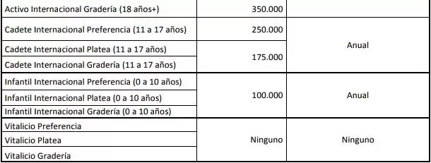 Para los partidos de copa internacional, los socios podrán adquirir entradas a precios de socio, como se hace habitualmente, y desde el momento que se pongan a la venta podrán escoger el sector que deseen ocupar, independientemente de la categoría de asociación que tengan. Los sectores de Preferencia VIP y Gradería Novena estarán destinados exclusivamente a la venta normal. En el caso de los socios vitalicios existentes, estos mantendrán su lugar en Preferencia.