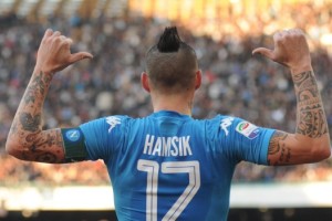 Hamsik, saltó al campo de juego con su tradicional número 17 en la espalda, además de un parche especial con el mismo número que en cierta manera auguraba lo que durante el encuentro iba a terminar sucediendo.