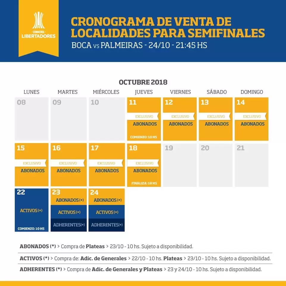 En cuanto al Xeneize que se medirá en La Bombonera frente al Palmeiras este próximo miércoles 24 de octubre desde las 21h45, las entras se conseguirán dependiendo de la condición de socio en las siguientes fechas.