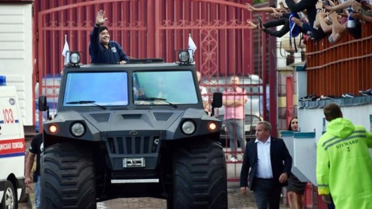 Luego de haber llegado al país, Diego fue acompañado hasta el estadio para ver un partido de su equipo por la Liga doméstica. Acompañado por su abogado, una persona que lo acompaña y lo asesora día y noche, Matías Morla, fue recibido por fanáticos que corearon su nombre durante todo el encuentro.