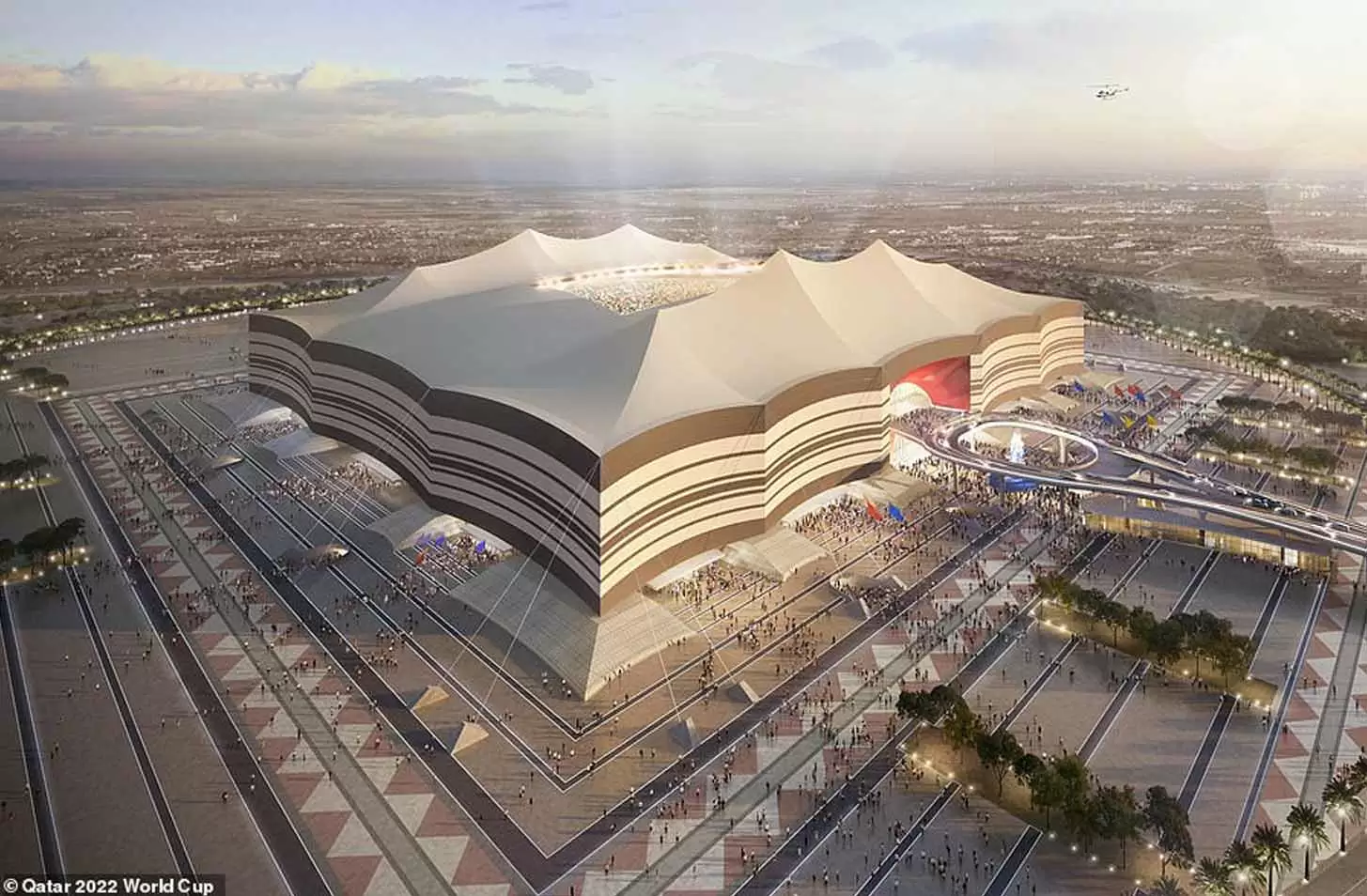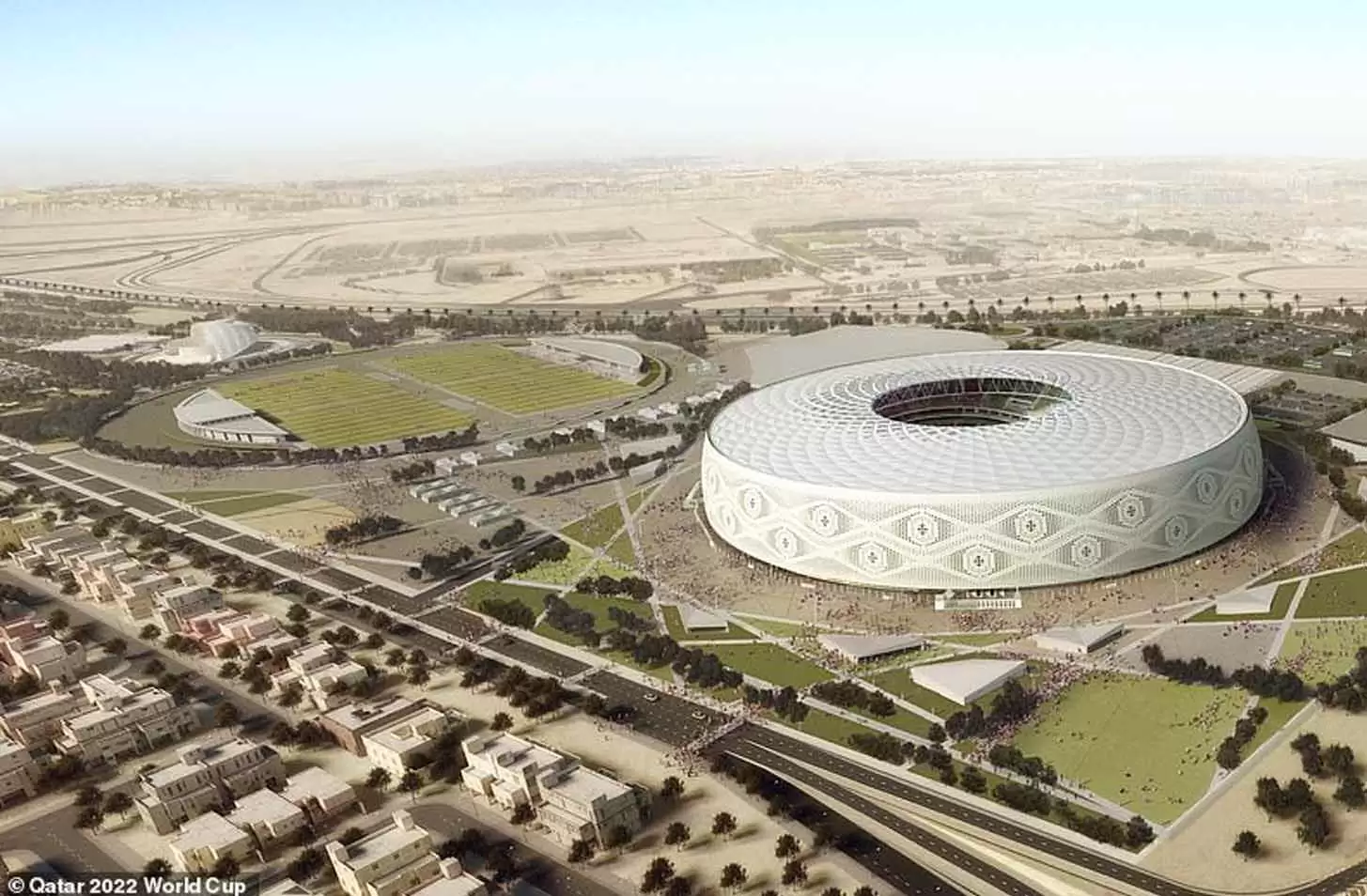 El estadio Lusail será sede del partido inaugural y de la gran Final del certamen. Se encuentra a 16 kilómetros del centro de la ciudad y tendrá una capacidad para 80.000 espectadores. Los diseños del estadio aún no han sido presentados por el Comité Organizador. Un tranvía conectara el centro de la ciudad con el recinto deportivo.