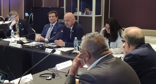 Horas antes del escándalo que terminó con la suspensión del partido entre River y Boca correspondiente a la final de la CONMEBOL Libertadores 2018, Gianni Infantino, presidente de la FIFA, participó este viernes en Buenos Aires de la sesión del Consejo de la CONMEBOL en donde recibió el apoyo total para su próxima candidatura en la sesión.