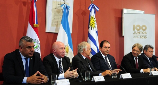 En un acto celebrado en la Casa Rosada de Buenos Aires esta semana, el presidente de la Asociación del Fútbol Argentino (AFA), Claudio Tapia; el secretario de Deportes de Argentina, Carlos Mac Allister; el coordinador argentino de la candidatura, Fernando Marín; el presidente de la Asociación Uruguaya de Fútbol, Wilmar Valdez; el secretario de Deportes de Uruguay, Fernando Cáceres; y el coordinador uruguayo de la candidatura, Eduardo Abulafia, participaron de la reunión y de la conferencia de prensa previa, acordaron ante todos los presentes que de la candidatura para la Copa Mundial de la FIFA del 2030 se subdividirá en dos sedes para Uruguay, dos para Paraguay y las ocho restantes para la Argentina.