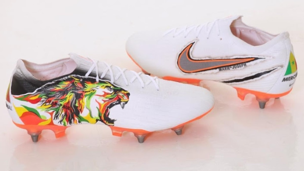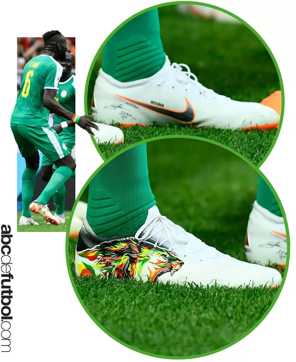 Personalizados de manera exclusiva por el artista francés @silni.art los botines Nike que utiliza el defensa franco-senegalés del Schalke 04 resaltan el swoosh de la firma norteamericana además de contar con una bandera de su país en el talón, el nombre de sus hijos y una firma en el borde interno. Además de la figura de un león rugiente con los colores de la bandera nacional del deportista.