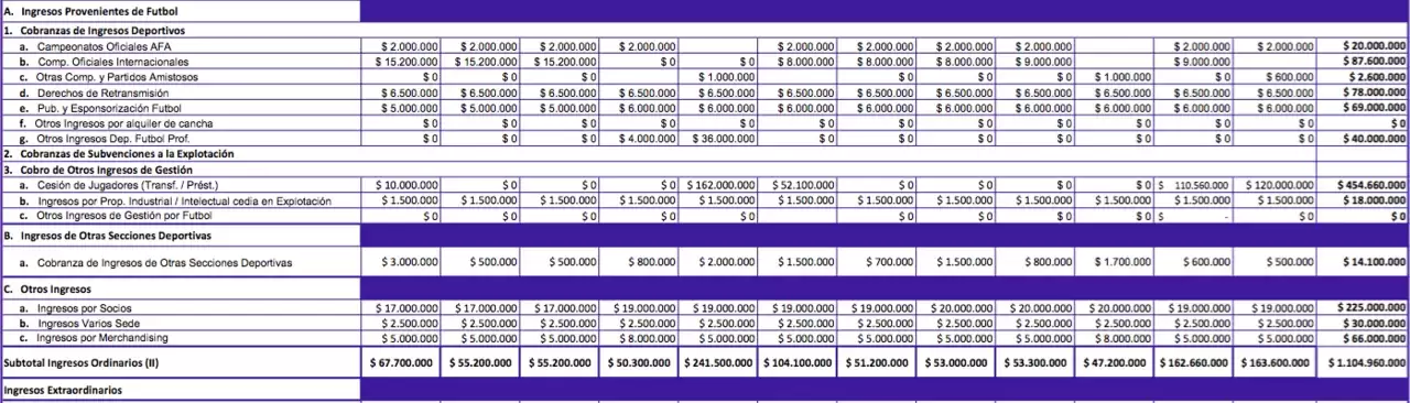 A continuación el presupuesto del club aprobado por sus socios para la temporada 2017-2018.