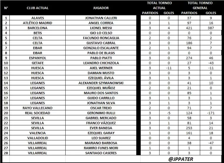 LaLiga de España, certamen que cuenta con argentinos en 16 de sus 20 participantes incorporó a los últimos siete en este mercado de pases.