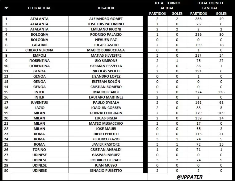La Serie A es la que más jugadores de origen argentino tiene (30), los cuales se dividen entre 14 de los 20 equipos y son 8 los que se sumaron en este mercado de pases.