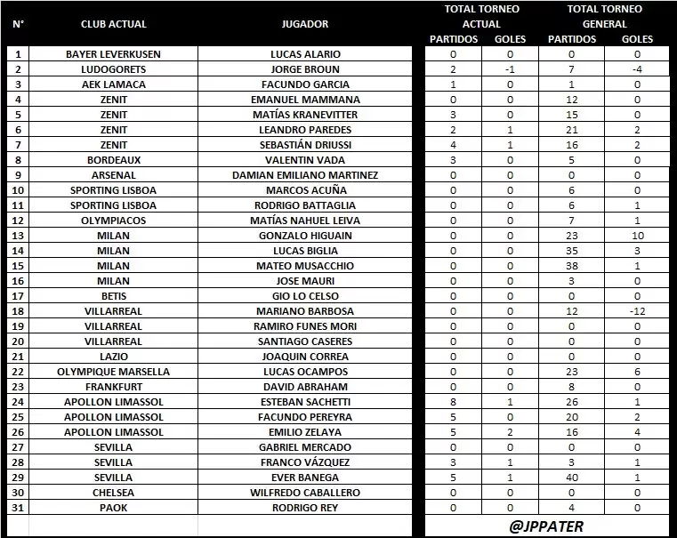 En vísperas de lo que será la continuación de las principales ligas de Europa y competencias internacionales, relevamos los datos de Juan Pablo Paterniti y repasamos cuántos y cuáles son los jugadores argentinos que se desempeñan en cada certamen.