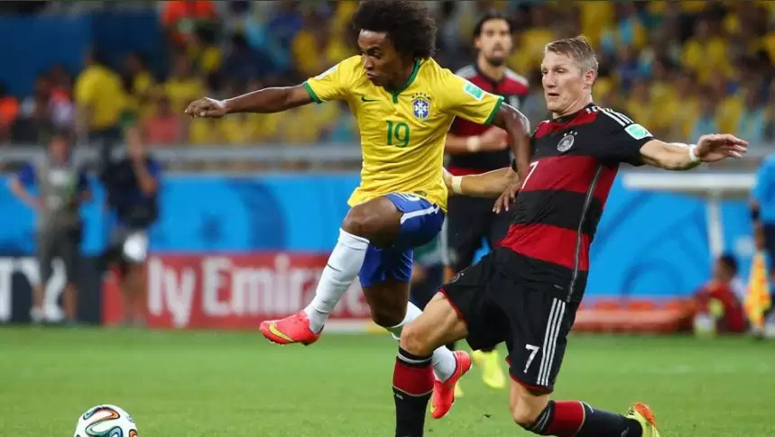 Del retoque también sufrieron dos jugadores alemanes, uno de ellos todavía se lo puede apreciar en la nueva imagen. Sami Khedira se encuentra ubicado en el fondo pero otro torso acompaña a Willian intentándole sacar la pelota, es Toni Kross.