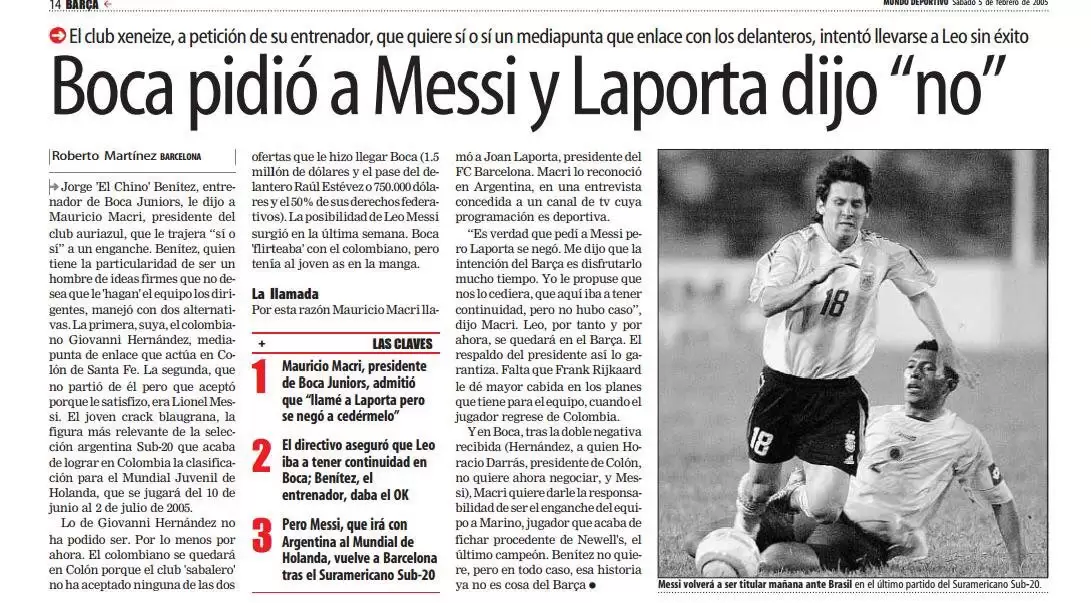 En una de sus últimas publicaciones, el diario Mundo Deportivo compartió una particular historia que cuenta el día en el que Lionel Messi fue sondeado por Boca Juniors y recibió un “no” rotundo como respuesta.