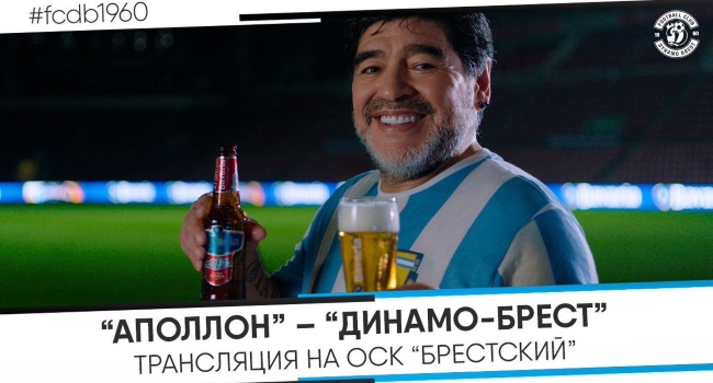 Mientras el equipo se prepara para encarar una nueva fase de la Liga Europea frente al Apollon Limassol de Chipre este jueves desde el Estadio GSP, miembros del departamento de marketing del Dynamo de Brest anunciaron un espacio dedicado a sus fans que no puedan viajar hasta la isla mediterránea, con Maradona como imagen de campaña.