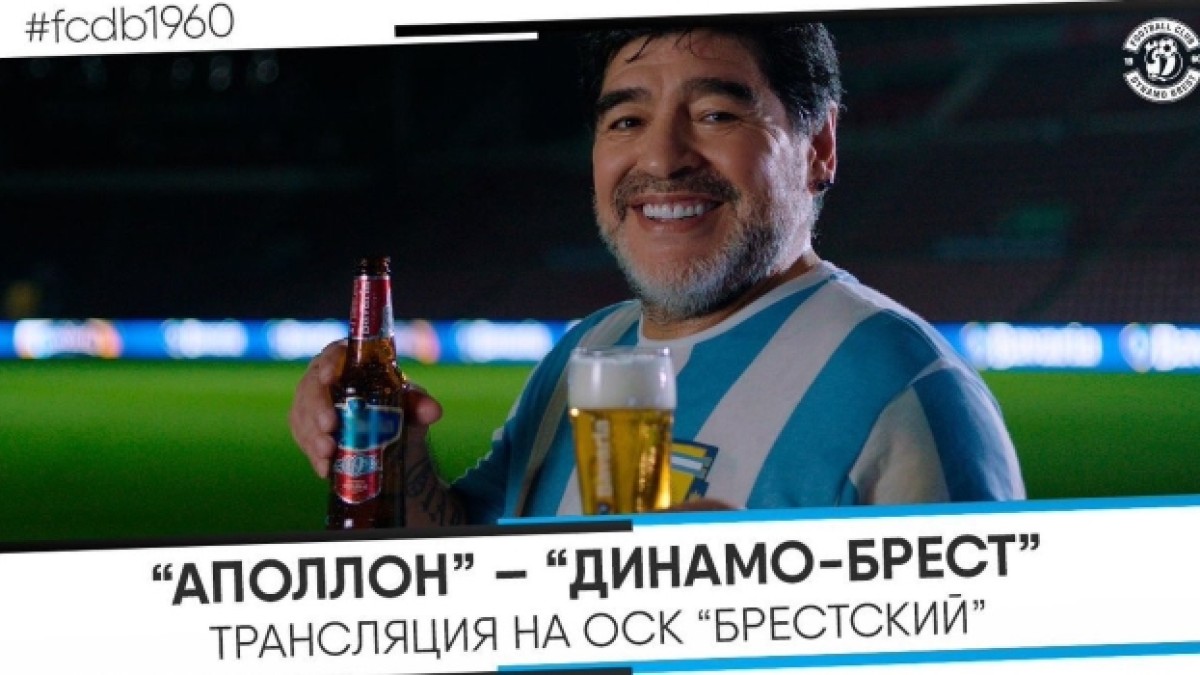 Mientras el equipo se prepara para encarar una nueva fase de la Liga Europea frente al Apollon Limassol de Chipre este jueves desde el Estadio GSP, miembros del departamento de marketing del Dynamo de Brest anunciaron un espacio dedicado a sus fans que no puedan viajar hasta la isla mediterránea, con Maradona como imagen de campaña.