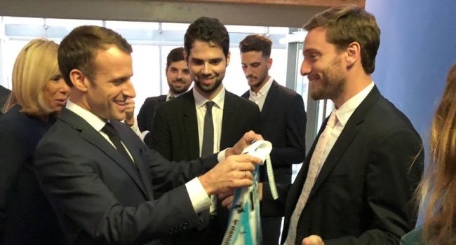 Llevando a @RacingClub a todos lados. Gracias @EmmanuelMacron por tu cordialidad y gracias @Kappa_Argentina por ayudarme a armar el regalo. pic.twitter.com/ZvFhCKGr6v