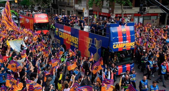 A falta de cuatro fechas, la distancia conseguida con el segundo tras la goleada le permitió al Barcelona conquistar su 25° título de liga. Con la victoria, que incluyó un “Hat-trick” de Lionel Messi, llegaron los primeros festejos, entre ellos la característica remera especial que diseña el sponsor técnico del Barcelona con el departamento de marketing del club.