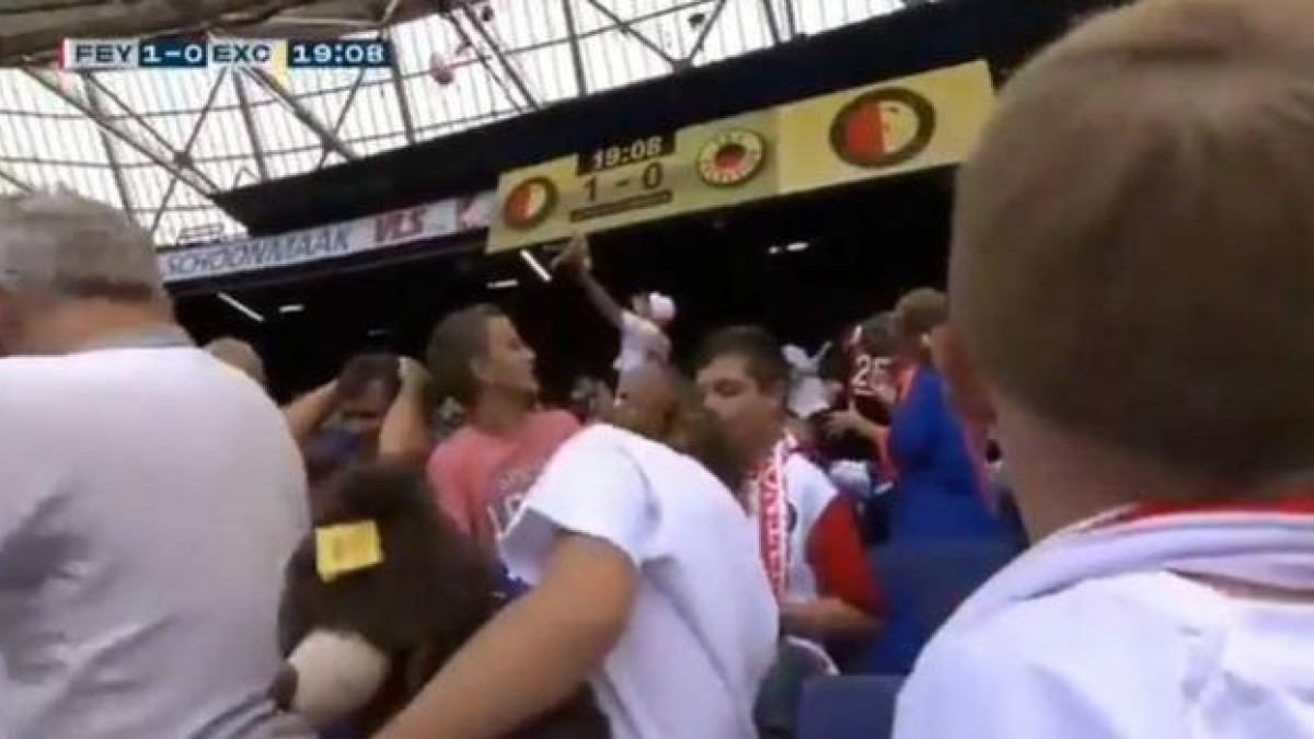 Poco importó lo deportivo en los 20 minutos que llevaba de juego el partido y en donde ya se imponía el local por 1 a 0 cuando fanáticos del equipo visitante protagonizaron una lluvia de peluches hacia el sector de los niños invitados, tal y como ya había sucedido dos años atrás con los hinchas del Den Haag en el mismo estadio.