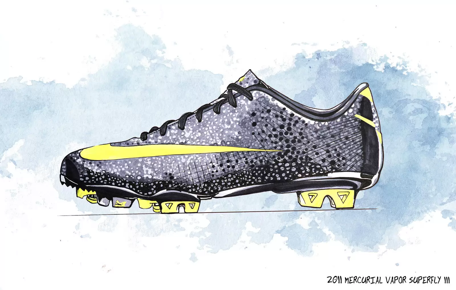 La génesis: La tercera encarnación de los Nike Mercurial Vapor Superfly tenían como objetivo maximizar cualquier oportunidad del jugador en la cancha al eliminar los pequeños tropiezos y resbaladas que el contrincante pudiera sacar provecho.