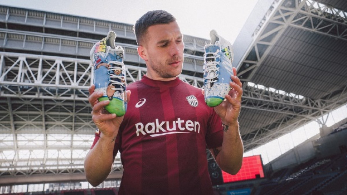 Podolski es fanático de “Super Campeones”, tanto que en 2017, cuando debutó en la Liga Japonesa junto al equipo Vissel Kobe, lo hizo utilizando unos botines adidas F50 adiZero Samba muy particulares. En ellos podía verse la cara de Oliver Atom, el personaje principal. Esto causo una sensación increíble en todos los hinchas del equipo que notaron el detalle cuando el alemán saltó a la cancha.