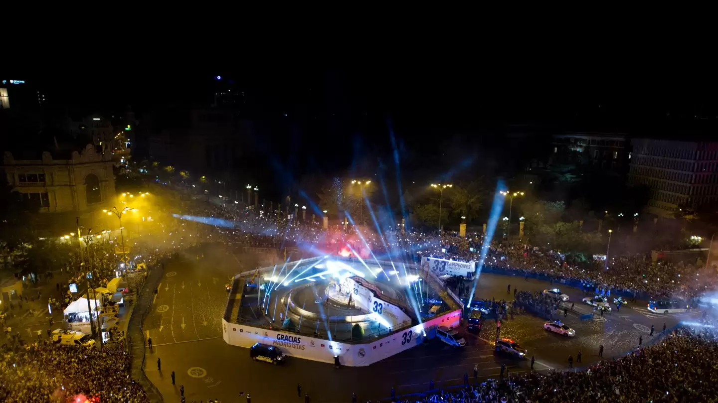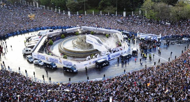 Es conocido históricamente que los hinchas del Real Madrid y Atlético de Madrid, los clubes más representativos de la ciudad festejan en la Plaza Cibeles y en la Fuente de Neptuno respectivamente, todo bajo un estricto control de las autoridades policiales.