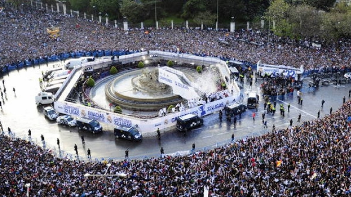 Es conocido históricamente que los hinchas del Real Madrid y Atlético de Madrid, los clubes más representativos de la ciudad festejan en la Plaza Cibeles y en la Fuente de Neptuno respectivamente, todo bajo un estricto control de las autoridades policiales.