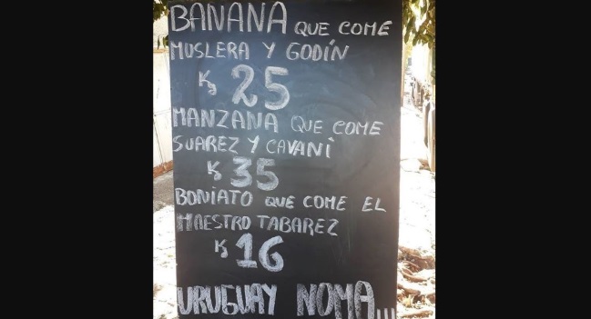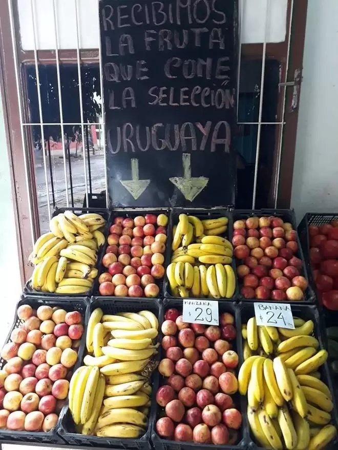 Tras la explicación los vecinos preocupados se tomaron más tranquilos la noticia. Es que ya están acostumbrados a que este comercio no sea como el de los demás comerciantes. No es la primera vez que el dueño utiliza un evento tan importante como el Mundial para aprovechar y colocar algunas ofertas o llenar sus carteles de ofertas creativas. En ellos se ofrece la “fruta que come la selección” y “las manzanas que comen Cavani y Suárez”. También asegura vender los huevos del plantel.