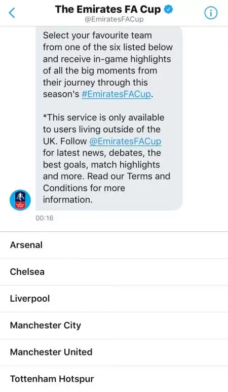 Por el momento, en la primera tanda, estarán disponibles los detalles de seis equipos, ellos son: Arsenal, Chelsea, Tottenham, Liverpool, Manchester City y Manchester United. Sólo basta con enviar un mensaje directo a la cuenta oficial de la Federación inglesa colocando el nombre del equipo favorito.