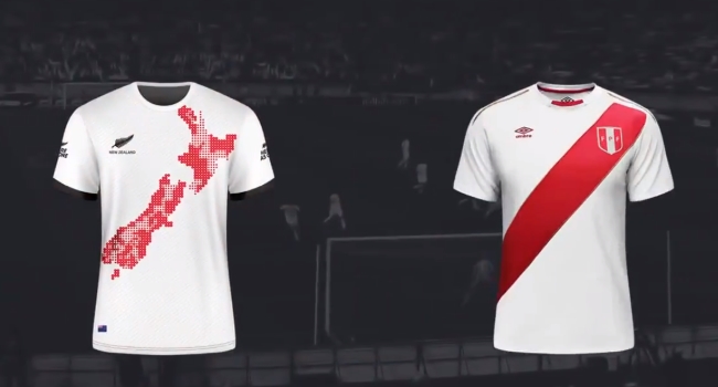 Considerando que tan solo 64 peruanos habitan en Auckland, la cervecería oficial de la Albirroja diseñó camisetas para los neozelandeses con la forma de su país a modo de la franja roja que atraviesa la camiseta del conjunto incaico, logrando un efecto inigualable a los ojos de la televisión al otro lado del Océano Pacífico.