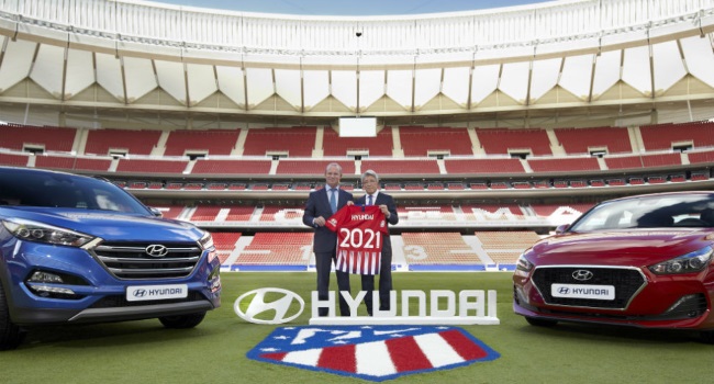 Tras el acuerdo firmado entre Hyundai y el Atlético de Madrid, la marca de autos le proporcionará automóviles a todos los jugadores y el cuerpo técnico. El logo de Hyundai estará ubicado en las mangas de las camisetas del equipo, según informa el sitio web Marca.