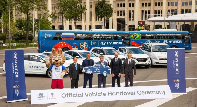 Hyundai es la automotriz oficial de la Copa del Mundo de Rusia 2018 y por tal motivo en las últimas semanas presentó la flota oficial de vehículos que trasladarán a las selecciones desde y hacia los estadios para los partidos oficiales. También la marca se encargará de proveer los autos oficiales para las autoridades.