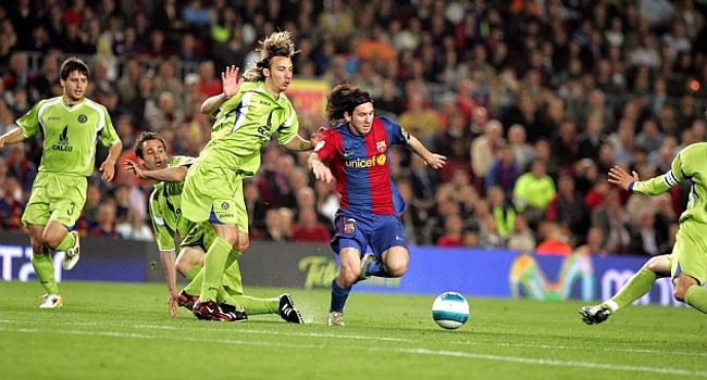 Bajo las mismas características, el video muestra al rosarino con la misma música y efectos de fondo mientras le anota al Getafe un gol que para muchos es casi idéntico al que Diego Maradona le marcó a Inglaterra en el Mundial de México 1986.