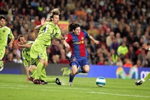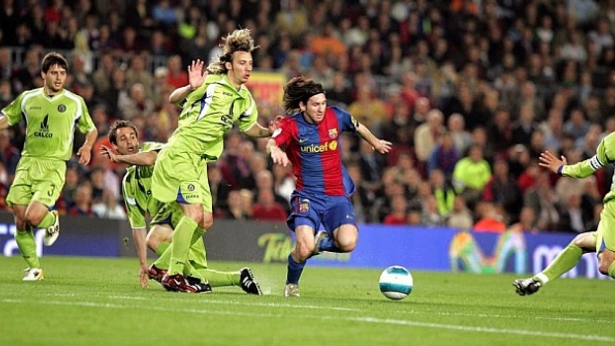 Bajo las mismas características, el video muestra al rosarino con la misma música y efectos de fondo mientras le anota al Getafe un gol que para muchos es casi idéntico al que Diego Maradona le marcó a Inglaterra en el Mundial de México 1986.
