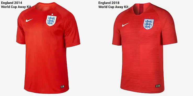 En base a los nuevos templates de la marca en todo el mundo, la camiseta se compone en su totalidad de color rojo, resaltando casi en relieve la St. George Cross en todo el pecho, para dejar al swosh en blanco en el costado superior izquierdo y al logo de la FA junto con una estrella (correspondiente a su único título mundial en 1966) en el lado del corazón.