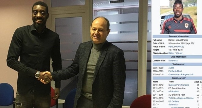 Una vez que llegó y firmó su vínculo, las charlas descubrieron que el jugador en realidad jugó en la reserva del US Orléans, un equipo de la B de Francia, y el Syrianska de Suecia.