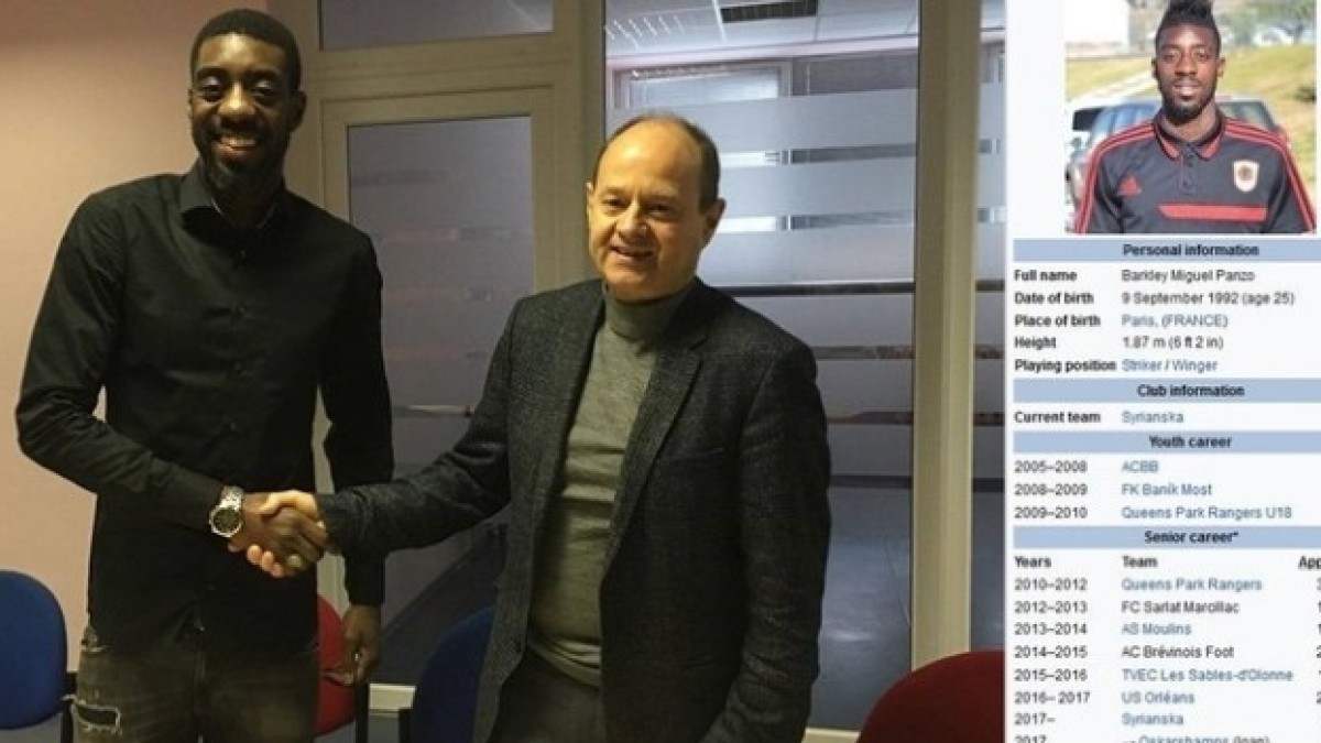 Una vez que llegó y firmó su vínculo, las charlas descubrieron que el jugador en realidad jugó en la reserva del US Orléans, un equipo de la B de Francia, y el Syrianska de Suecia.