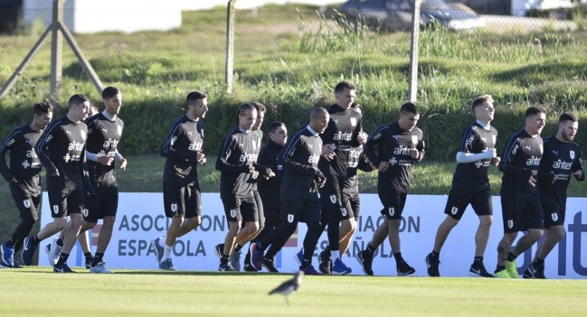 Tras arreglarse los inconvenientes entre los jugadores y la asociación, los convocados por Tabárez lucieron en su ropa de entrenamiento las marcas que ahora trabajan con ellos. La lucha por los derechos de la imagen de los jugadores terminó..jpg)