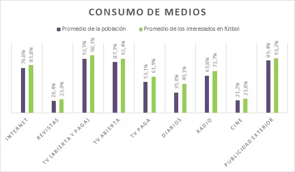 Con la llegada del Mundial FIFA 2018, Kantar IBOPE Media presentó el perfil de los interesados en el fútbol en América Latina, con base en los datos del estudio TGI. De acuerdo con el levantamiento, el fútbol está entre los temas favoritos del 34% de los entrevistados que consumen medios (televisión, radio, revistas, diarios e internet) en Argentina, Chile, Colombia, Ecuador, México, Perú y Brasil, lo que equivale a 63 millones de personas. Más de la mitad de este público (51,5%) tiene entre 20 y 44 años. Analizando la relación de los interesados en fútbol con los medios de comunicación, se puede decir que éstos los consumen más que el promedio de la población, destacando diarios, televisión por subscripción y radio.
