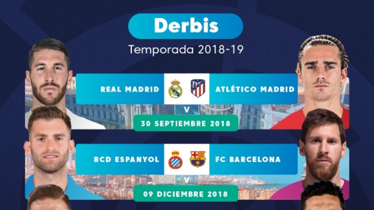 Cada año LaLiga ofrece una multitud de derbis emocionantes y este año no es una excepción. Tanto el derbi sevillano (R. Betis vs Sevilla FC) como el valenciano (Levante UD vs Valencia CF) tendrán lugar en la jornada 3 (1-2 de septiembre) mientras que el Real Madrid dará la bienvenida al Atleti en el primer derbi madrileño de la temporada en la jornada 7 (29-30 de septiembre).