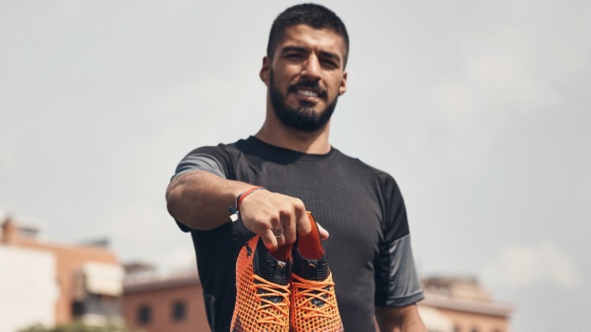 Suárez usará los botines PUMA FUTURE. El primer botín de fútbol con un ajuste verdaderamente personalizable, la tecnología NETFIT de PUMA Future permite a los jugadores adaptarse a sus necesidades únicas, sin importar la forma del pie o la necesidad de atado. La última versión disponible en el mercado es PUMA Future 2.1 (Uprising Pack) en un impactante color naranja.
