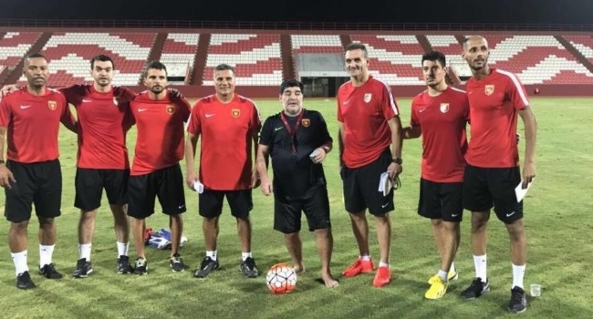 A sus 57 años y con una serie de lesiones en sus dos rodillas y tobillo derecho, Diego Armando Maradona sigue sorprendiendo con su técnica en los entrenamientos del Al Fujairah, equipo de segunda división al cual dirige desde inicios del año pasado.