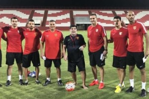 Maradona la rompe pateando tiros libres en el entrenamiento de su equipo