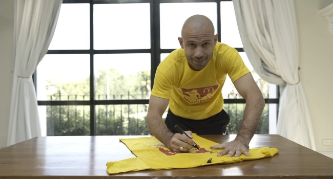 McDonald’s Argentina le da la bienvenida a Javier Mascherano como embajador del concurso “De la mano al Mundial”, una iniciativa de la marca a nivel mundial, a través de la cual la compañía selecciona a niños de entre 6 y 10 años de edad para ingresar de la mano de los jugadores de las diferentes selecciones de fútbol en su ingreso a la cancha.