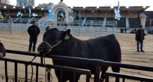 Este ejemplar Angus de 920 kilos, perteneciente a la cabaña Curaco, de General Acha, La Pampa, fue bautizado como Mbappé, el joven delantero de la Selección francesa que se consagró campeón del Mundo en el día de ayer.