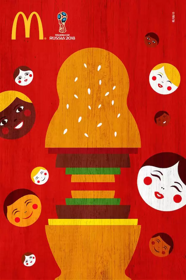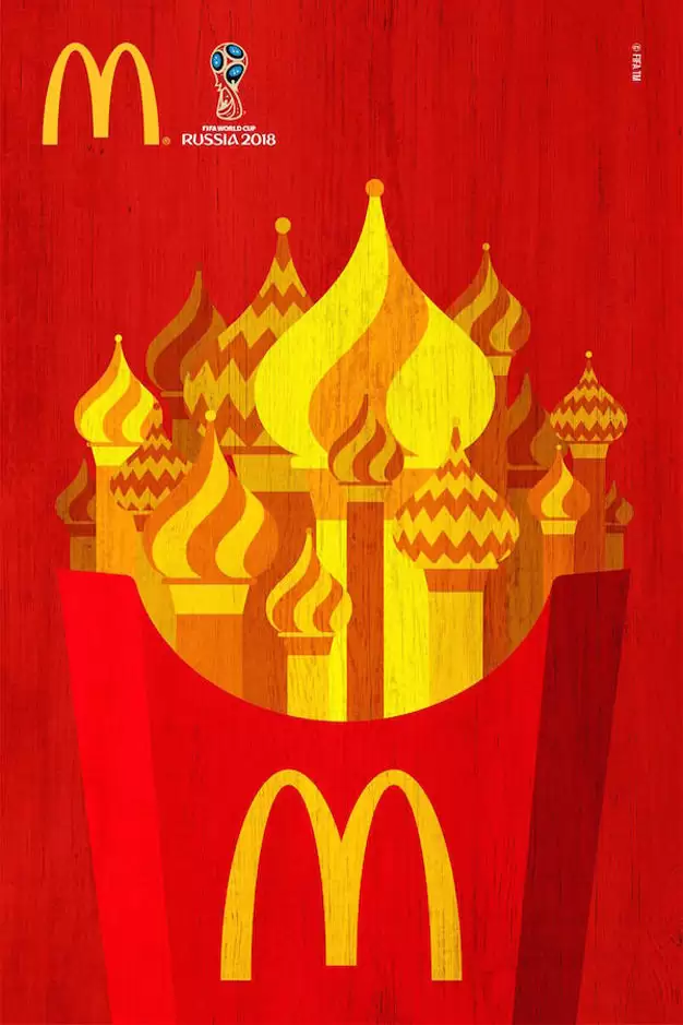 En ellos, las personas que se acerquen a los locales de McDonald’s podrán encontrar a los principales símbolos del país que recibirá por primera vez al certamen más importante de fútbol del mundo. Entre ellos estarán: La catedral de San Basilio y las características muñecas rusas. El diseño de los posters mezcla las comidas características de la casa de comida rápida con monumentos y objetos rusos.