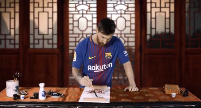 Con la participación de Lionel Messi, Andrés Iniesta, Gerard Piqué, Paulinho, Sergi Roberto y Luis Suárez, el spot muestra como cada uno de los futbolistas escribe un mensaje en caracteres chinos como símbolo de la fortuna para este nuevo “Año del Perro” que se celebra en el continente asiático.
