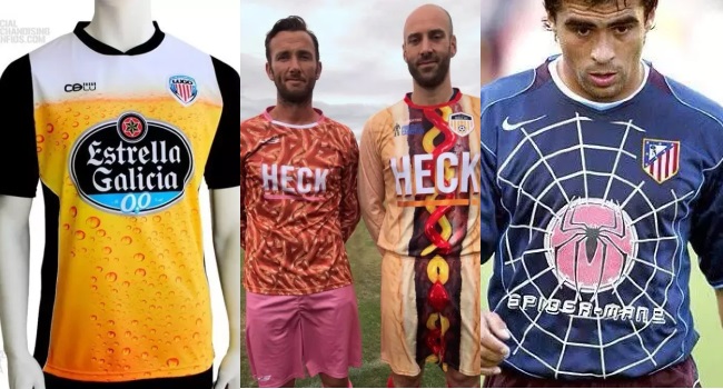 Días después de que el Bedales AFC de Inglaterra volviera a presentar una camiseta con el diseño de una marca de salchichas, repasamos cinco de los casos más llamativos en donde el main sponsor de un club influyó en el estilo de indumentaria de un equipo.