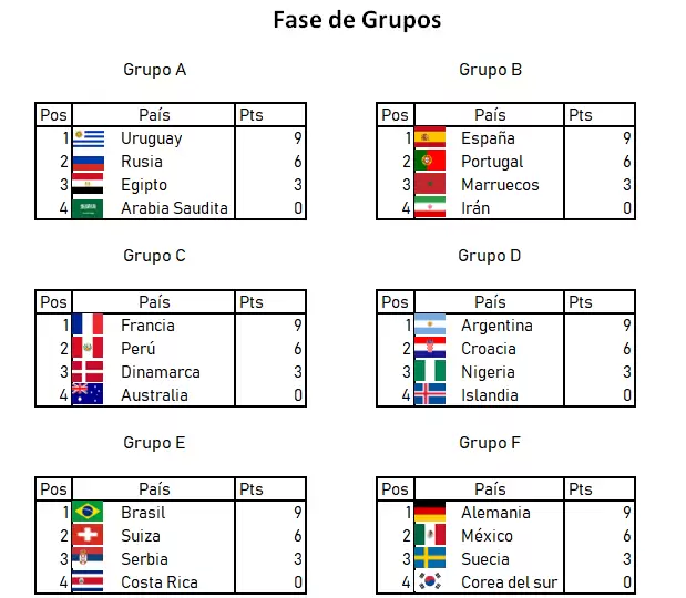 - Una de las llaves completa de la 2da fase predomina exclusivamente Nike (Sin Adidas) con Portugal, Francia, Croacia, Brasil, Corea del Sur, Inglaterra y Polonia. Sólo intercede en el medio Uruguay con Puma. La otra llave predomina exclusivamente Adidas (Sin Nike) con España, Rusia, Argentina, Alemania, Suiza, Colombia y Bélgica. Sólo intercede Perú con Hummel. Por lo que parece, los valores de los planteles fueron cuidadosamente elegidos por uno y otro para estar parejos; al mejor estilo "Pan y Queso" como cuando elegíamos en el potrero.