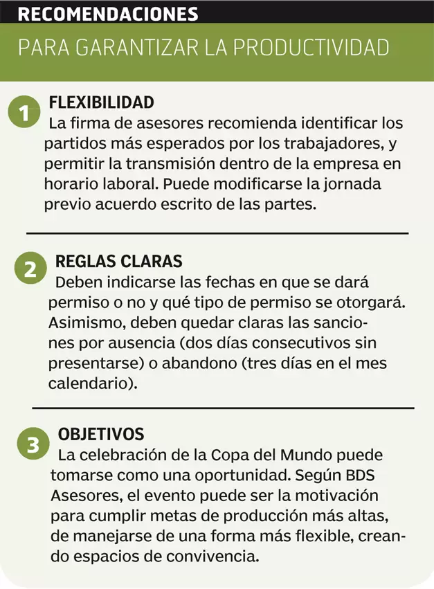 Lo cierto es que, si bien depende de la naturaleza de cada compañía y las facilidades para que sus empleados puedan disfrutar de un encuentro, se recomienda sabiduría a la hora de usar el Mundial como una herramienta y no como un obstáculo laboral.