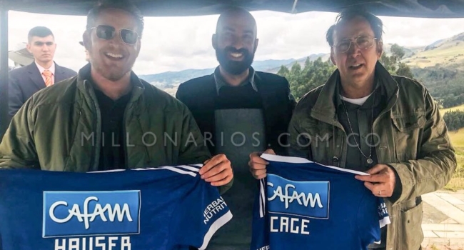 Mientras se lleva a cabo el ambicioso rodaje de la película “Running With The Devil” en la capital de Colombia, Nicolas Cage y Cole Hauster, dos laureados actores internacionales se animaron a posar con la camiseta de Millonarios de Colombia durante una visita corta de sus dirigentes al set de la película.