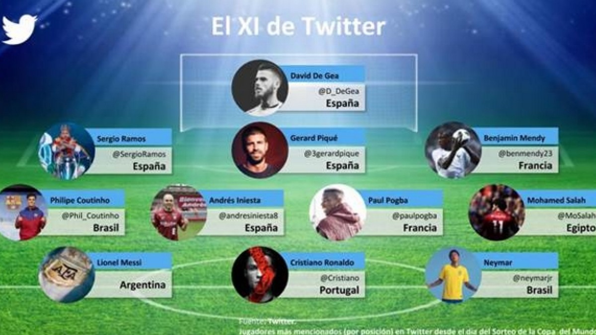 A días para el inicio de la Copa Mundial de la FIFA Rusia 2018, un análisis provisto por la plataforma especializada TwitterData reveló a Cristiano Ronaldo como el futbolista más popular en redes sociales de entre los 736 que participarán de la cita mundialista. Asimismo, se animó a armar un Once Ideal bajo el mismo criterio.