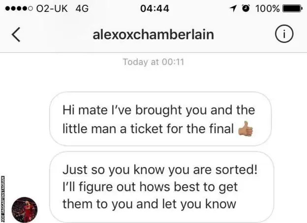 En este contexto, fue el mediocampista inglés Alex Oxlade Chamberlain quien sorprendió a un aficionado con un mensaje a la noche, contándole que tenía separadas dos entradas para él y su hijo a cuenta personal.