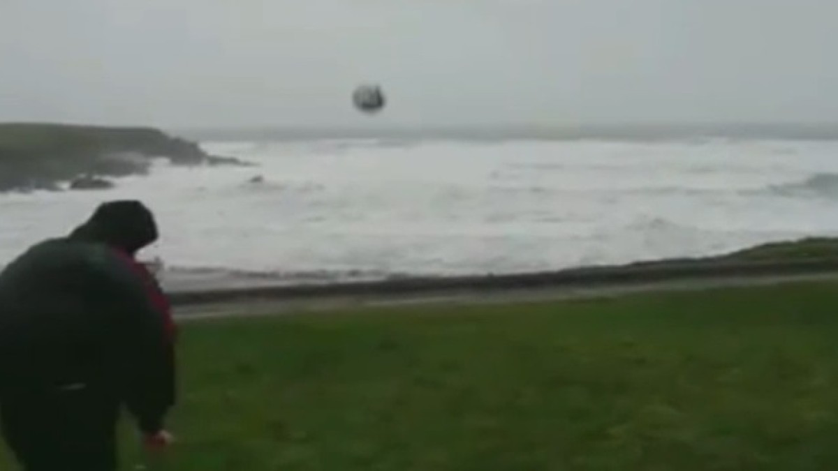 Uno de éstos clips caseros se dio en el sur de la isla británica, en donde un aficionado se animó a patear en dirección opuesta al viento y segundos más tarde la vio volver en un efecto boomerang que sorprendió a propios y extraños.